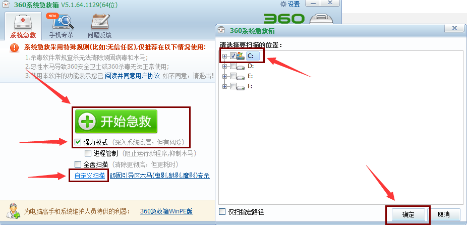 第2种,下载安装360系统急救箱,查杀电脑后,重启即可。下载地址